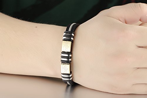 Ostan - "Knight" 316L acciaio inossidabile e gomma gotico bracciale da uomo, nero,200mm - nuovo gioielli moda