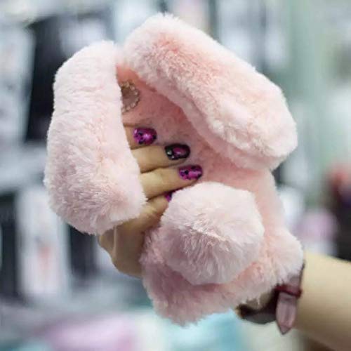 Ostop Cover per iPhone 11,Custodia Carino 3D Peluche Coniglio Orecchie Morbido Pelliccia Gomma Silicone Flessibile Leggera Cover Caso per iPhone 11,Rosa