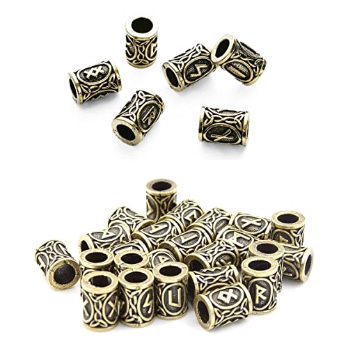 Osuter 24PCS Viking Runes Perline Lega di zinco Rune Vichinghe Capelli con 2PCS Cordoncino Collana Nera per ciondolo collana barba capelli bigiotteria(Bronze)