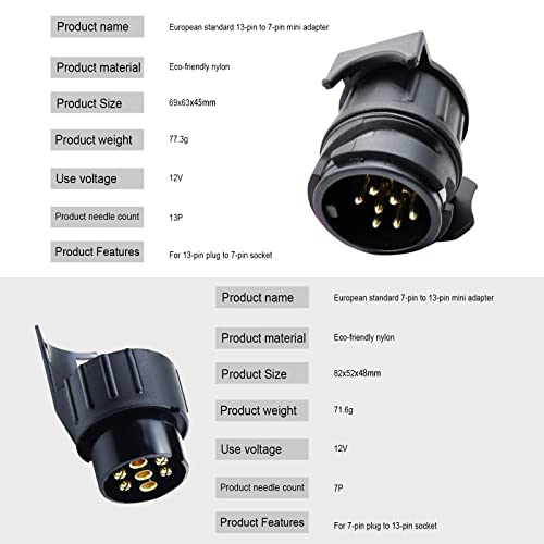 【Applicazione】 - Adatto per rimorchi, auto, SUV, ecc. Esistono due diversi usi: uno è per la spina a 13 pin per convertire la presa a 7 pin e l'altro è per la spina a 7 pin per convertire la presa a 13 pin.