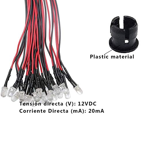 Osuter Diodo ad Emissione Luminosa LED, 70PCS 12V Pre Wired LED con 70PCS Plastica Diodo Supporto per Trasformazione e Illuminazione di Circuiti Automobilistici o Interni