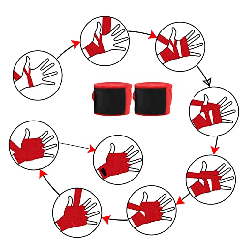 【Taglia】 - La lunghezza della nostra fasciatura da boxe è di 2,5 e 1,5 metri e la lunghezza dell'avvolgimento consente agli atleti di avvolgere correttamente tutte le aree chiave per evitare lesioni.