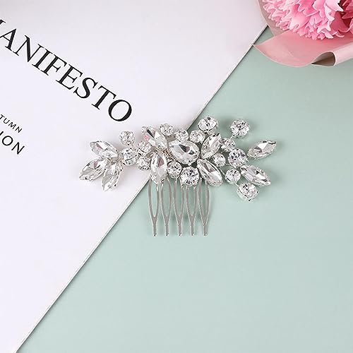 OSUWLSI Pettine Sposa per Capelli con Fiori di Perle Cristallo Accessori Capelli Sposa Pettine per Decorazione Acconciatura Capelli per Sposa Matrimonio Nozze Argento