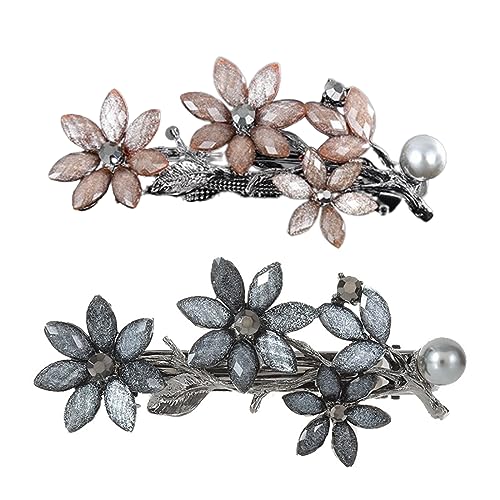 OSUWLSI 2 pezzi eleganti fermagli per capelli da donna e ragazza, alla moda, glitter squisito fiore cristallo fermagli per capelli francesi da donna, fermaglio per capelli vintage.