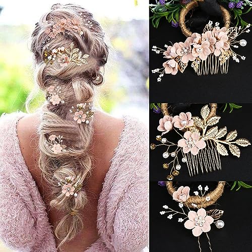 OSUWLSI 3 Pezzi Pettine per Capelli da Sposa, Fermagli a Pettine da Sposa, Perle Fiore Strass Pettine per Sposa, da Sposa Fiore Pezzo di Capelli per Donne e Ragazze