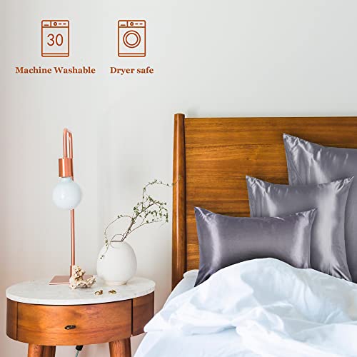 OSVINO 2 Pezzi Federe Cuscini da Letto Raso 65x65 cm Grigio Super Morbido Liscio Confortevole Federa da Cuscino Microfibra Fresco in Estate
