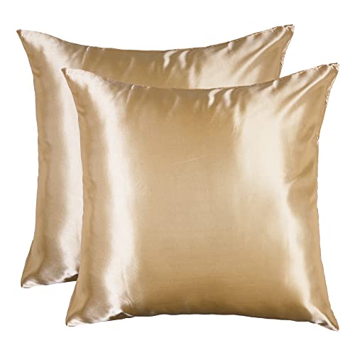 OSVINO 2 Pezzi Federe Cuscini da Letto Raso 80x80 cm Oro Super Morbido Liscio Confortevole Federa da Cuscino Microfibra Fresco in Estate