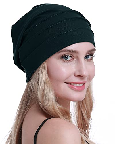 Osvyo Cotone Chemo Cappelli Soft Caps Cancro Copricapo per le donne perdita di capelli sigillati imballaggio, verde scuro, Taglia unica