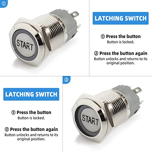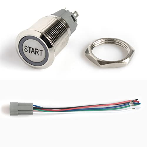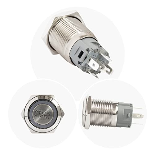 OSXCAUES 16mm Interruttore a Pulsante Autobloccante in Metallo 12V/24V Interruttore a pulsante impermeabile precablato a 5 pin con luce anulare a LED e simbolo di START (luce rossa)