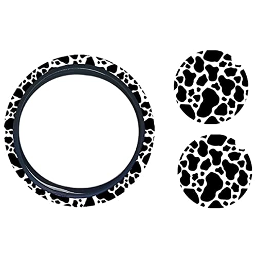OSXINYIV Coprivolante, 2 Pezzi Sottobicchieri per Auto, Coprivolante Universale per Auto Stampa Mucca Tessuto per Immersioni Coprivolante Elastico Antiscivolo (36,5-38 cm)