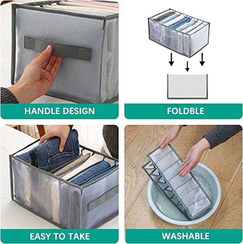 OSYBZ Organizer per guardaroba, 3 pezzi, 7 griglie, lavabile, pieghevole, scomparto in rete, per vestiti, leggings, camicie, jeans, vestiti