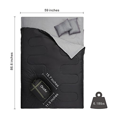 OtdAir Sacco a Pelo Doppio con Cuscini/2 Persona Impermeabile Leggero Protable Sacco a Pelo per Campeggio, Viaggi, Escursioni, Trekking Nero