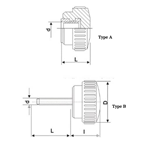 Materiale manico: bachelite, materiale del filo: acciaio al carbonio, trattamento della superficie filettatura: galvanica Contenuto della confezione: 8 pezzi x manopola zigrinata.