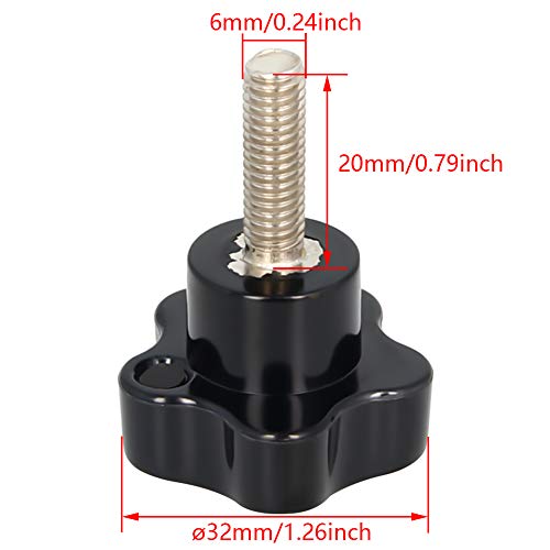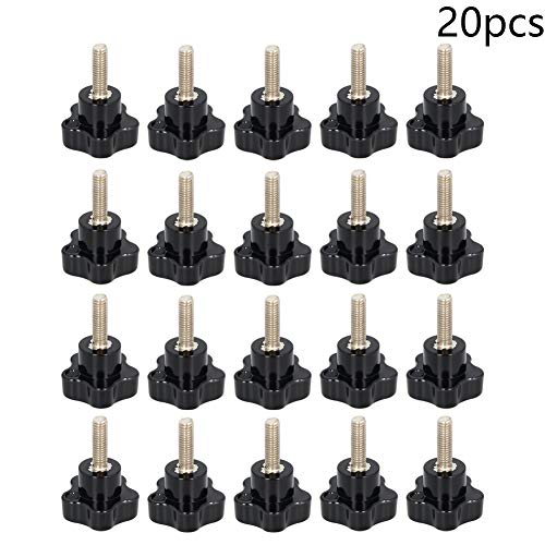 Othmro 20 pomelli M6 con manico nero, 32 mm x 20 mm, zincati, a stella, a vite, a forma di stella, manopole filettate con manico a cinque stelle, per sega, trapano, torio, tornio (senza rondella)