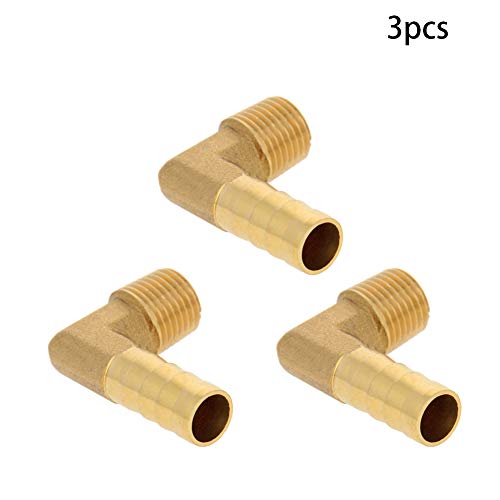 Othmro Raccordo per tubo flessibile in ottone, gomito a 90 gradi, 10 mm da spinato a 1/4" G maschio, 3 pezzi