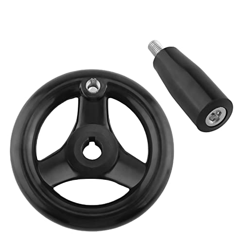 Othmro 1Pcs Rotondo Tre Volantino 1,2 cm Diametro Foro Centrale 10 cm Diametro Volantino Nero PP 3 Raggi Tornio Volantino con Maniglia Girevole per Fresatrice Torni Smerigliatrici