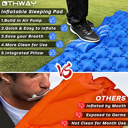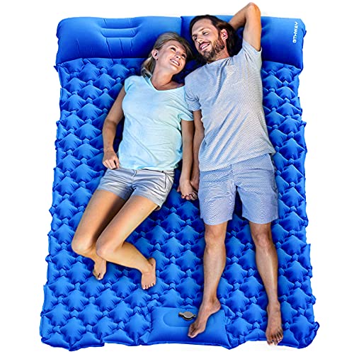 OTHWAY Doppio materassino da campeggio, gonfiabile, con pompa, materassino da campeggio, con cuscino per auto, viaggi, zaino in spalla, escursionismo, tenda da viaggio (blu navy)