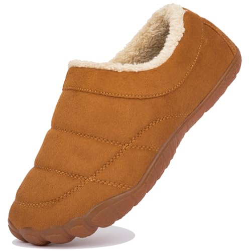 OTIEMU Pantofole da Casa Uomo Ciabatte Invernali Memory Foam Scarpe Calde Peluche con Gomma Suola per Interno Esterno Taglia 40-50, Marrone,41 EU