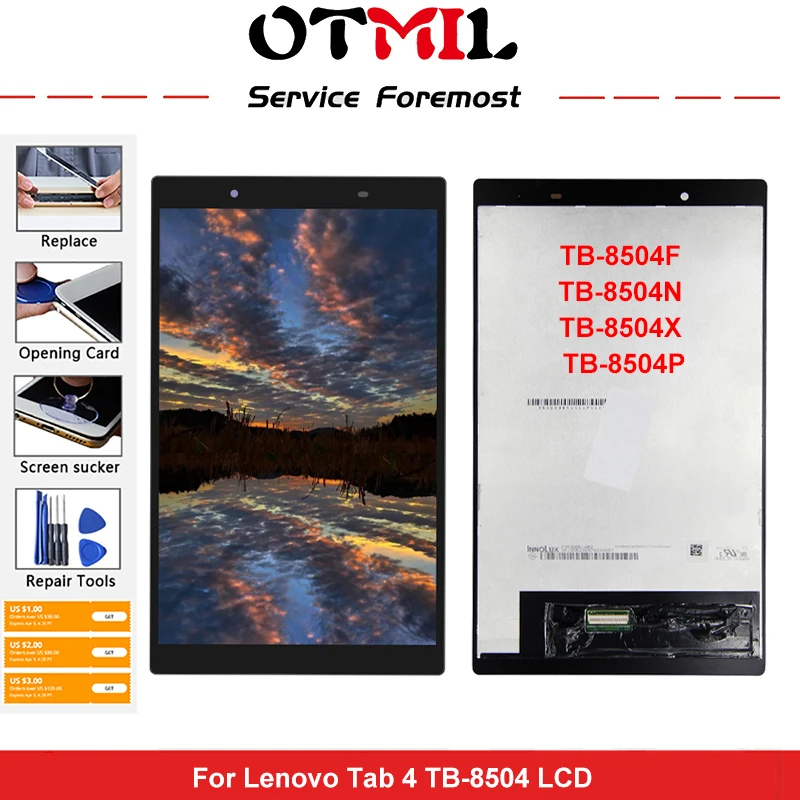 OTMIL 8.0" For Lenovo Tab 4 8504 LCD TB-8504F TB-8504N TB-8504X TB-8504P Tablet PC LCD Display Touch Screen Assembly Free Tools