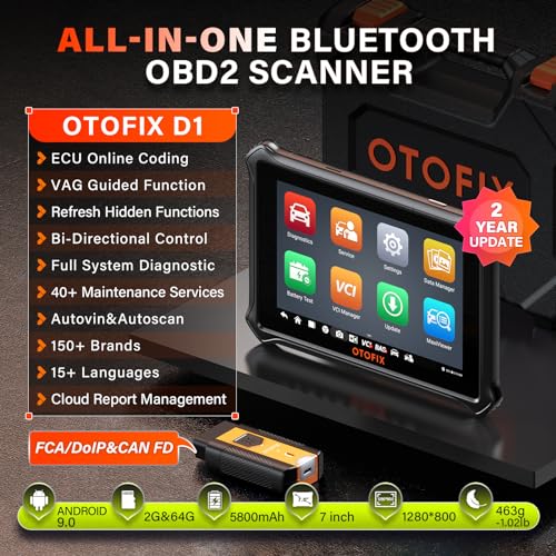 【PIÙ LEGGERO E PIÙ INTELLIGENTE】OTOFIX D1, Giovinezza e design leggero! Ottieni risultati accurati entro 1 minuto per tutti i sistemi con la scansione con un clic. Ottieni codifica ECU di livello OE, funzione guidata, immobilizzatore, reset 40+, test attivo per eseguire diagnosi complesse. Supporta i protocolli DOIP e CAN FD, FCA AutoAuth per la diagnosi continua dei veicoli 2023/2024. Aggiornamento gratuito di 2 anni (costo di $ 700), garanzia di 2 anni.