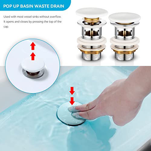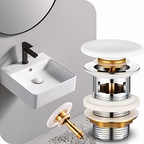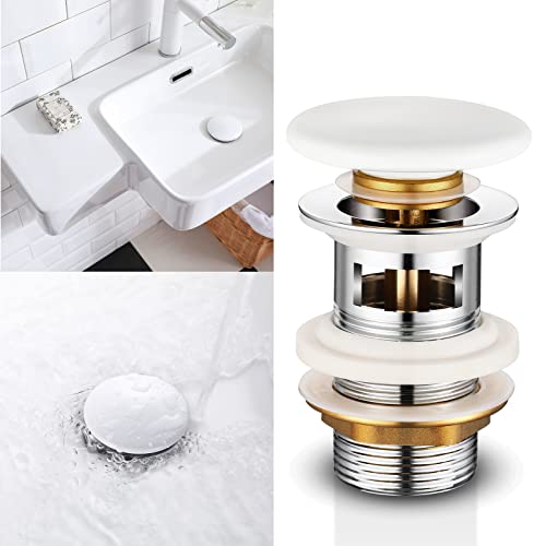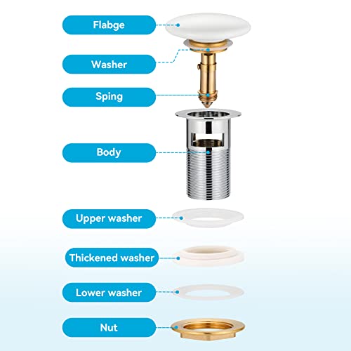 【Valvola Pop Up bianca】 La valvola di scarico del lavandino è costruita in modo robusto con una solida molla di compressione in ottone che garantisce un buon ritorno elastico e una rapida tenuta. Basta premere con le dita, il tappo del lavandino può chiudersi o aprirsi in un istante.