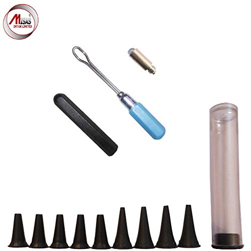 Accessori gratuiti: otoscopio viene fornito con un kit di pulizia e 10 Specula USA e getta Mini cerume (5 x 2.5 mm, 5 x 4.0 mm).