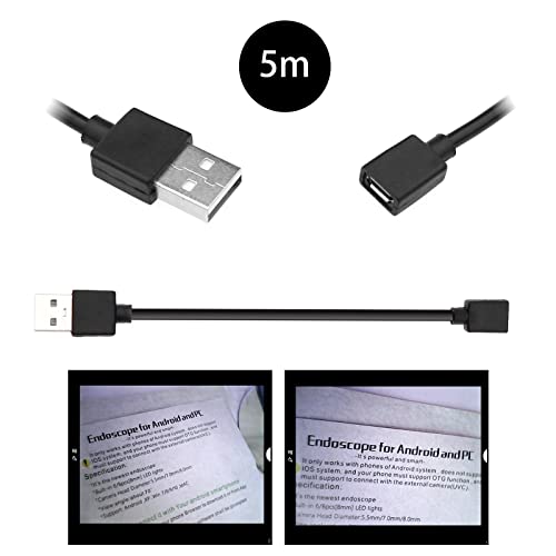 OTOTEC Endoscopio USB per industria con 6 LED 5,5 mm periscopio 5 m compatibile con Android e PC USB/Micro USB endoscopio impermeabile
