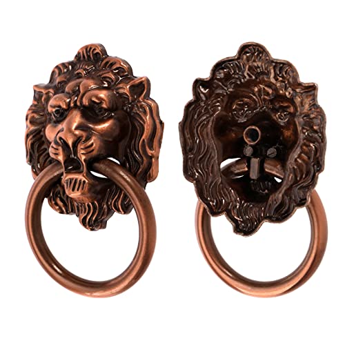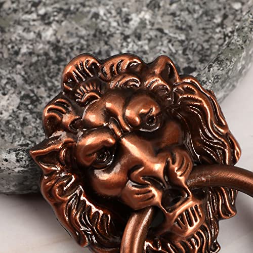 OTOTEC Set di 6 maniglie vintage a forma di testa di leone in lega di zinco con viti per armadio, cassetto, armadio, scatola di legno, scatola di legno, bronzo rosso