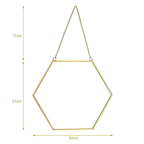 OTOTEC Medio Dimensioni Appeso Specchio Da Parete Esagonale Decor Ottone Cornici Casa Bagno Camera Da Letto Soggiorno Ingresso Moderno Vintage 24 cm