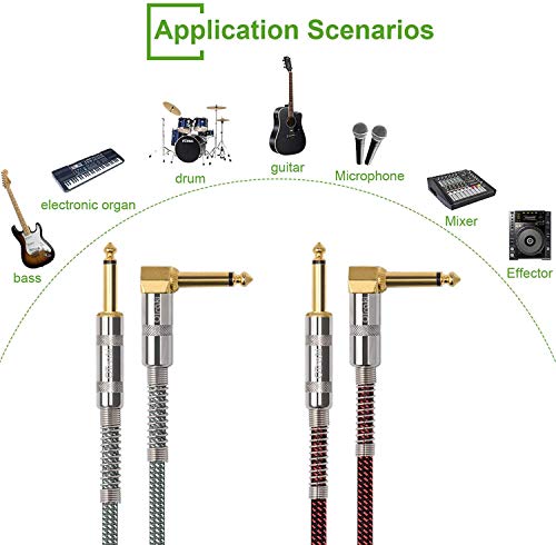 Compatibilità: Connettore mono da 6.35 mm 1/4 "TS Il cavo resistenti con schermatura di alta qualità, ideale per altoparlante, amplificatore, mixer audio, chitarra, basso, tastiera, pianoforte e sintetizzatore e altri dispositivi con presa audio da 6.35mm