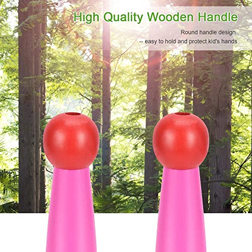 【Design Ergonomico】Manico in legno leggero, forma arrotondata, dimensioni della maniglia, molto adatto per la padronanza dei bambini, facile da impugnare e dai colori vivaci con cartoni animati. Il design antiscivolo impedisce alla maniglia di scivolare durante il salto