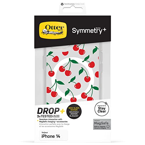 OtterBox Cover per iPhone 14/iPhone 13 Symmetry+ Clear per MagSafe, resistente a shock e cadute fino a 2 metri, sottile, testata 3x norme MIL-STD 810G, CHERRY ON TOP