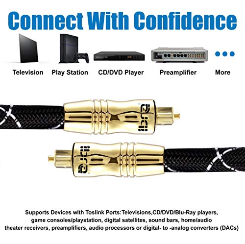Cavo audio ottico digitale Toslink, 24K. Fibra ottica di alta qualità per una trasmissione audio digitale chiara. una migliore protezione di cavo, antigraffio, anti-pressione, anti-usura, anti-urti, più durevole, altamente flessibilità.