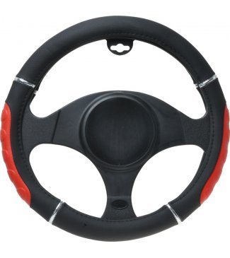 Ottima qualita' universale coprivolante cromo nero rosso per auto Anti Scivolo Diametro 37-39cm + 1 adesivo da pc "Ricambi Auto Europa" GRATIS