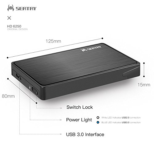 [ottimizzato per SSD] SEATAY 2.5 pollici disco rigido esterno alluminio USB3.0 per SATA I/II/III 2.5 HDD SSD Werk Libera installazione per PC/Mac/NOTEBOOK UASP Trim moda in colore nero