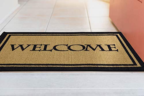 Ottomanson Zerbino rettangolare, collezione “Welcome”, con scritta “Welcome”, con bordo, 51 cm x 76 cm, colore: Beige