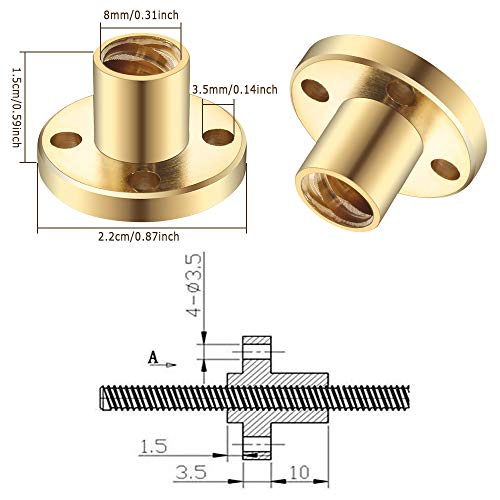 【MISURA】: Dado in ottone T8 adatto per barra filettata T8 da 8 mm. Diametro vite: 8mm, distanza viti: 2mm.