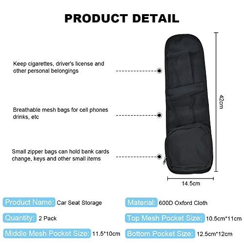 OTTYMO 2 Pz Seggiolino Laterale Organizer Laterale Borsa Laterale per Seggiolino Auto Organizer Laterale Sedile Auto con 3 Tasche 42*14cm per Auto, Camion, Mini Furgoni (Nero)