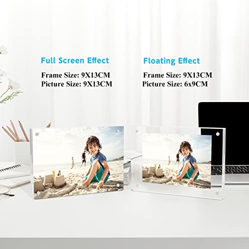 OTZRTIY Cornici per Foto in Acrilico, Cornici per Foto Magnetiche 9x13cm 10+10mm di Spessore Cornice Trasparente Doppia Faccia Espositore da Tavolo Autoportante Cornici Acriliche - Confezione da 3