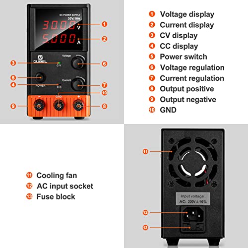 ✔ 【Cinque Funzioni di Protezione】La sicurezza è la nostra priorità. alimentatore da laboratorio è durevole e compatto Molte protezioni includono protezione limite di corrente, protezione termica, protezione da sovraccarico di tensione, protezione da cortocircuito, protezione da sovraccarico.