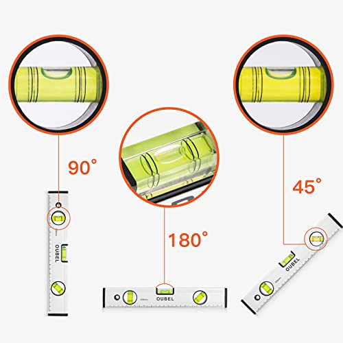 OUBEL Livelle a Bolla Magnetica, Adatta per professionisti e fai da te, con tre libellule e righello da 30 cm, Orizzontale, Verticale, 45 Gradi Misura, in alluminio.