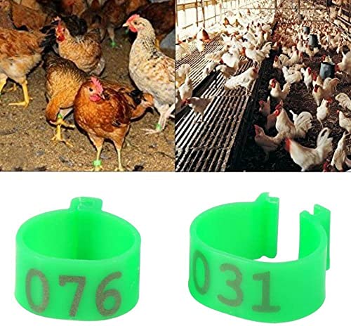 Oubit Anelli per Cosce di pollame 6 Colori 100 Pezzi/Borsa 16 mm 001-100 numerati in plastica pollame polli Anatre Fasce per Gambe D'Oca Anelli(Verde)