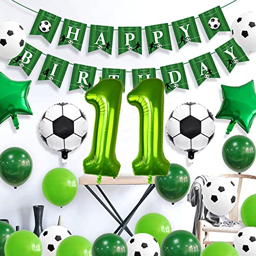 Ouceanwin Palloncini Compleanno Calcio 11 anni Bambini, Palloncini a Elio Calcio Verdi Palloncino Numero 11, Bandierina Buon Compleanno per 11 anni Decorazioni di Feste di Compleanno Addobbi