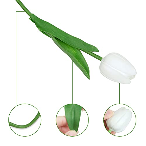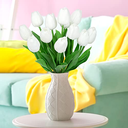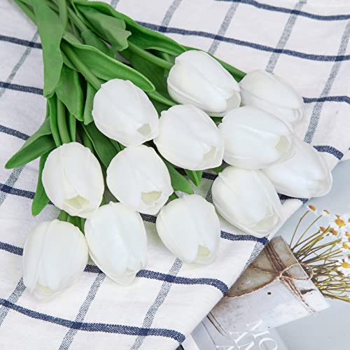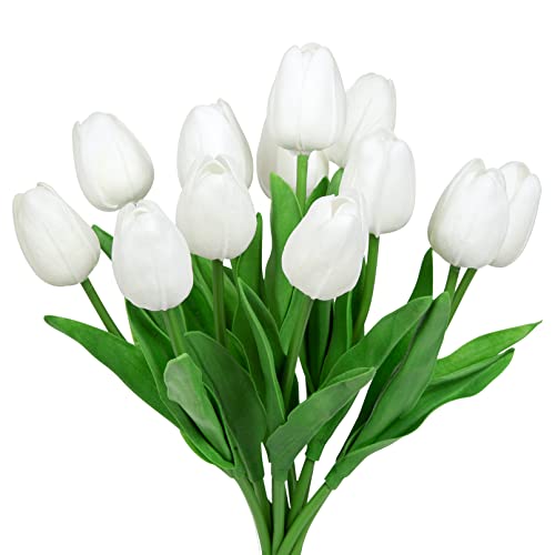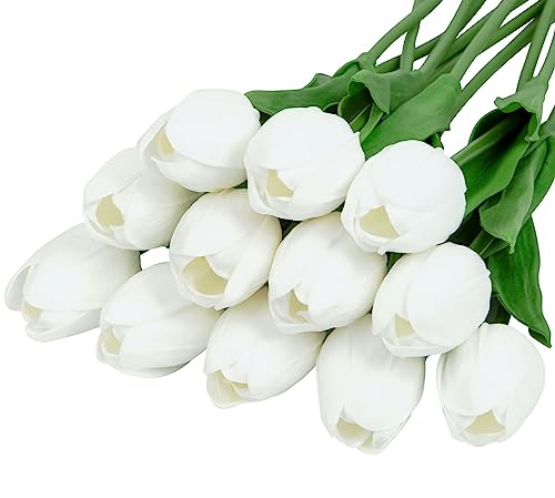 Ouddy Daily 12 Pcs Tulipani Artificiali Bianchi, Fiori Finti, Tulipani Finti in Lattice, Tocco Reale, Fiori Artificiale Possono Essere Utilizzati per Cerimonie, Composizioni Floreali e Fai-da-te