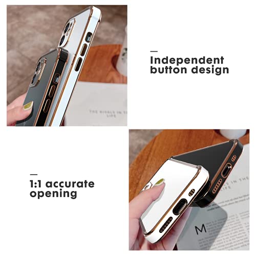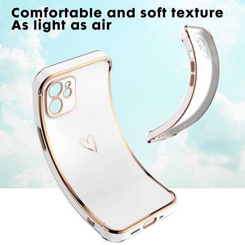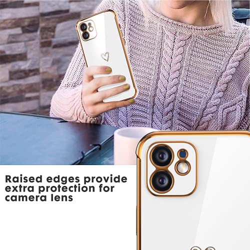 Oududianzi-Cover Compatibile con iPhone 12 Custodia [2 Pack Vetro Temperato] Cornice Dorata Galvanica Piccolo Cuore D'amore Custodia in Silicone Morbido Gomma Cover Antiurto Ultrasottile -Bianco