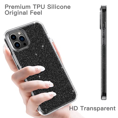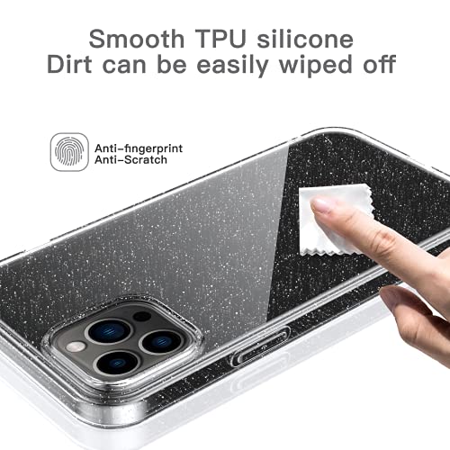 Oududianzi - Cover Compatibile con iPhone 13 Pro Max, [2 Pezzi Pellicola in Vetro Temperato] [Cover Trasparente con Glitter] Custodia Protettiva Silicone Ultrasottile e Morbido 6.7 Pollici-Trasparente