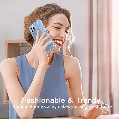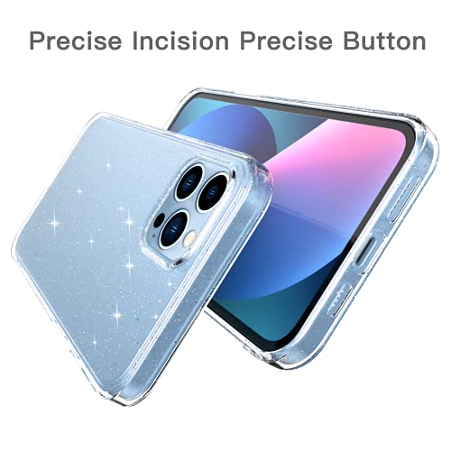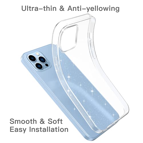 Oududianzi - Cover Compatibile con iPhone 13 Pro, [2 Pezzi Pellicola in Vetro Temperato] [Cover Trasparente con Glitter] Custodia Protettiva Silicone Ultrasottile e Morbido 6.1 Pollici - Trasparente