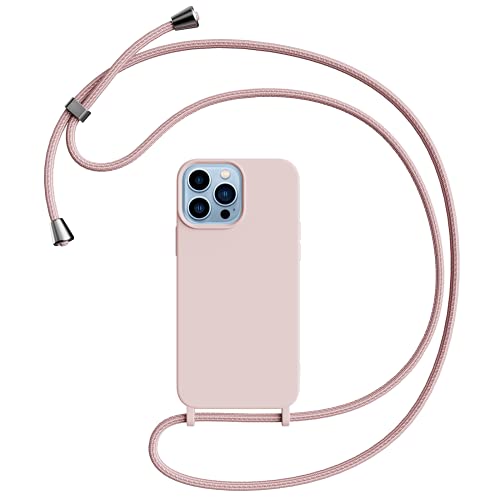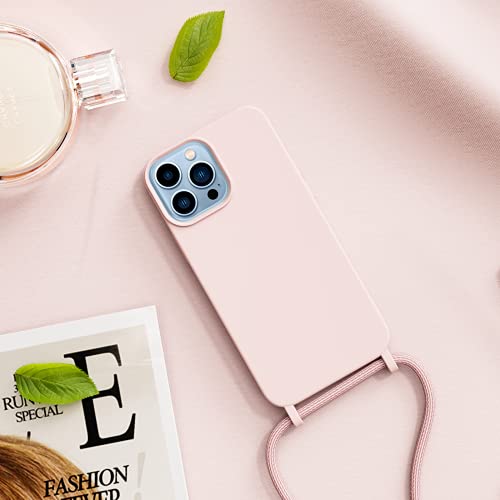 Oududianzi Cover Compatibile con iPhone 13 Pro (6,1 Pollici), Custodia Morbida in Silicone TPU Cordino Regolabile-Rosa