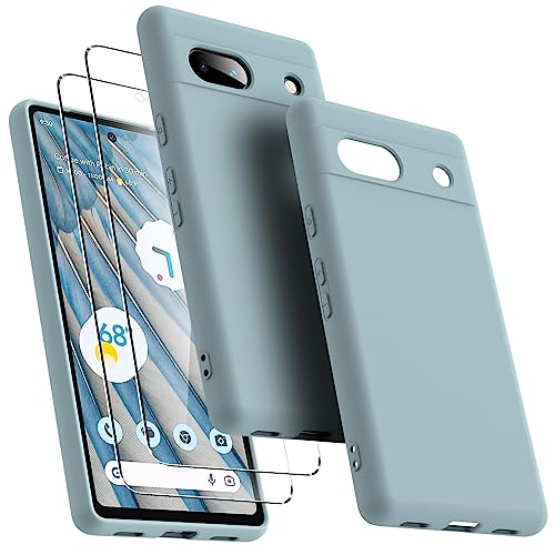 Oududianzi Cover per Google Pixel 7a con 2 pezzi di proteggi schermo in vetro temperato, sottile copertura protettiva in silicone liquido Custodia antiurto per telefono per donne/uomini - Menta