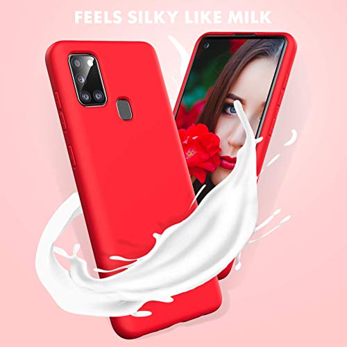 Oududianzi- Cover per Samsung Galaxy A21s Custodia Morbida in Silicone Liquido + [2 Pack Pellicola Protettiva Vetro Temperato ], Cover Tinta Unita Ultrasottile e Antiurto Gomma Case - Rosso